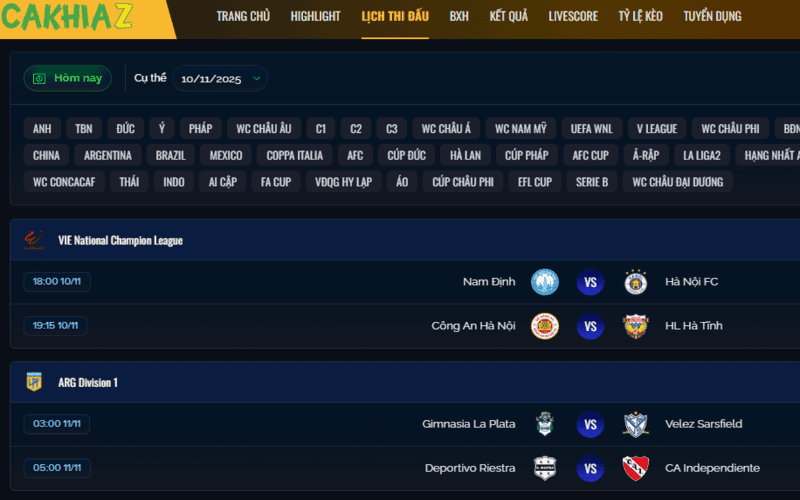 Trải nghiệm lịch thi đấu thông minh và tiện lợi trên Cakhia TV