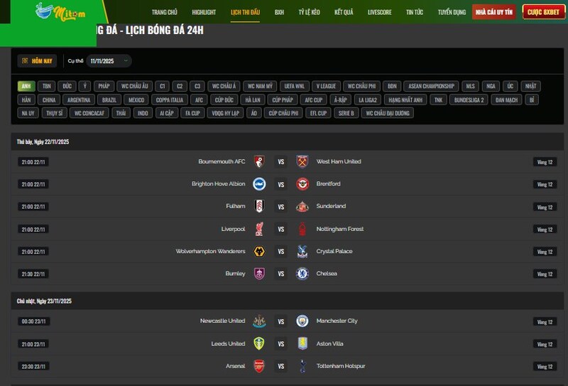 Lịch thi đấu bóng đá anh trên Mitom – Chỉ cần lướt nhẹ, tim đã rung