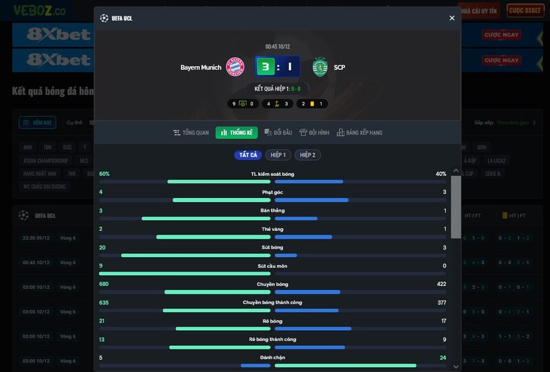 Ngoài ra, mục thống kê trận đấu cung cấp dữ liệu như: